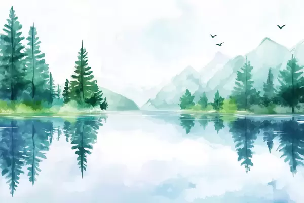 Poster See in der Nähe des Berges in Aquarell-Stil f43922