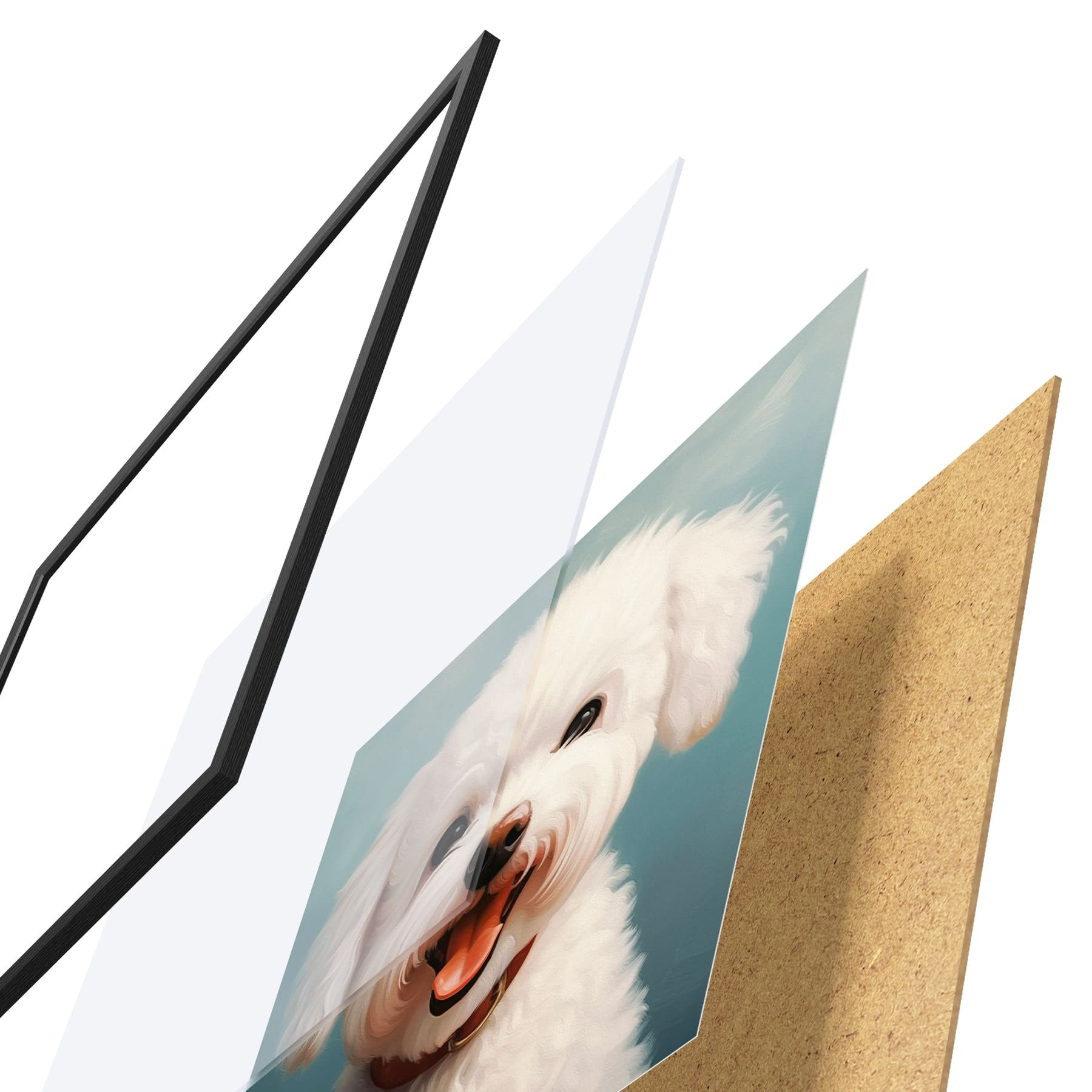 Das Poster besteht aus einem Rahmen, Plexiglas, einem gedruckten Bild und einer Rückwand aus Spanplatten. Dank der Halterungen auf der Rückseite kann das Poster sofort an die Wand gehängt werden.