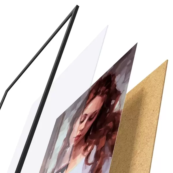 Das Poster besteht aus einem Rahmen, Plexiglas, einem gedruckten Bild und einer Rückwand aus Spanplatten. Dank der Halterungen auf der Rückseite kann das Poster sofort an die Wand gehängt werden.