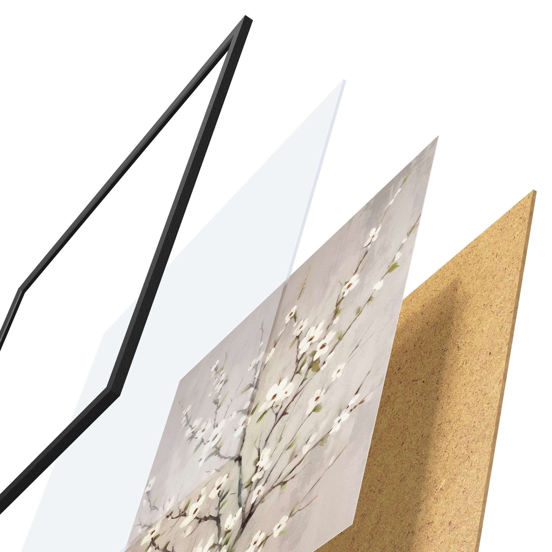 Das Poster besteht aus einem Rahmen, Plexiglas, einem gedruckten Bild und einer Rückwand aus Spanplatten. Dank der Halterungen auf der Rückseite kann das Poster sofort an die Wand gehängt werden.