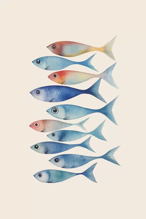 Poster Fisch Minimalismus Nachahmung Aquarell f43960