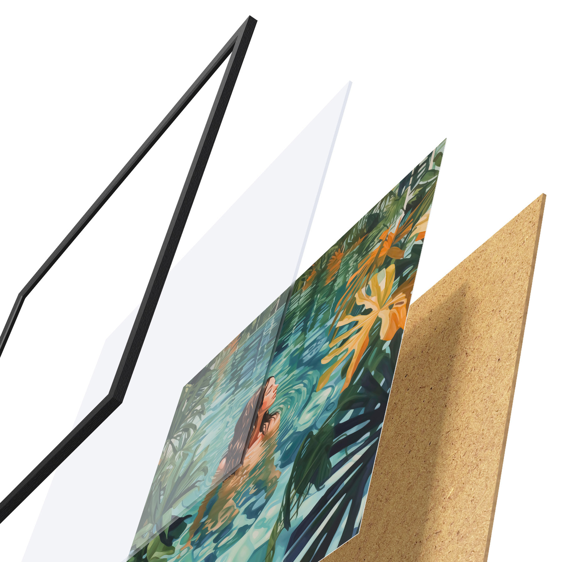 Das Poster besteht aus einem Rahmen, Plexiglas, einem gedruckten Bild und einer Rückwand aus Spanplatten. Dank der Halterungen auf der Rückseite kann das Poster sofort an die Wand gehängt werden.