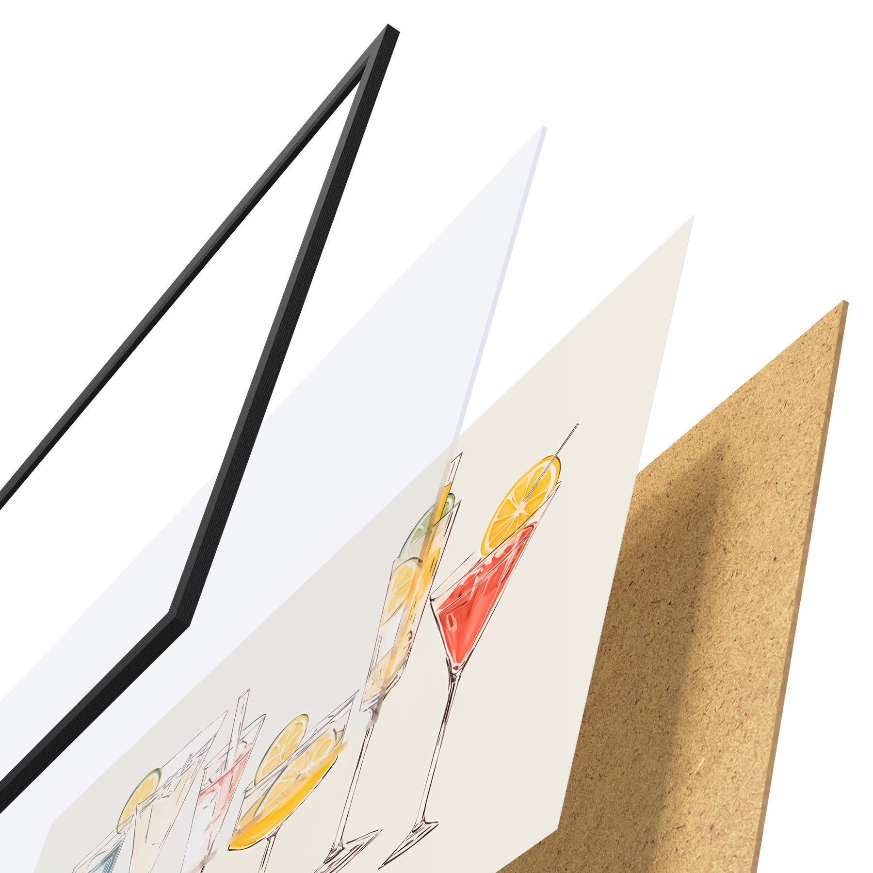 Das Poster besteht aus einem Rahmen, Plexiglas, einem gedruckten Bild und einer Rückwand aus Spanplatten. Dank der Halterungen auf der Rückseite kann das Poster sofort an die Wand gehängt werden.