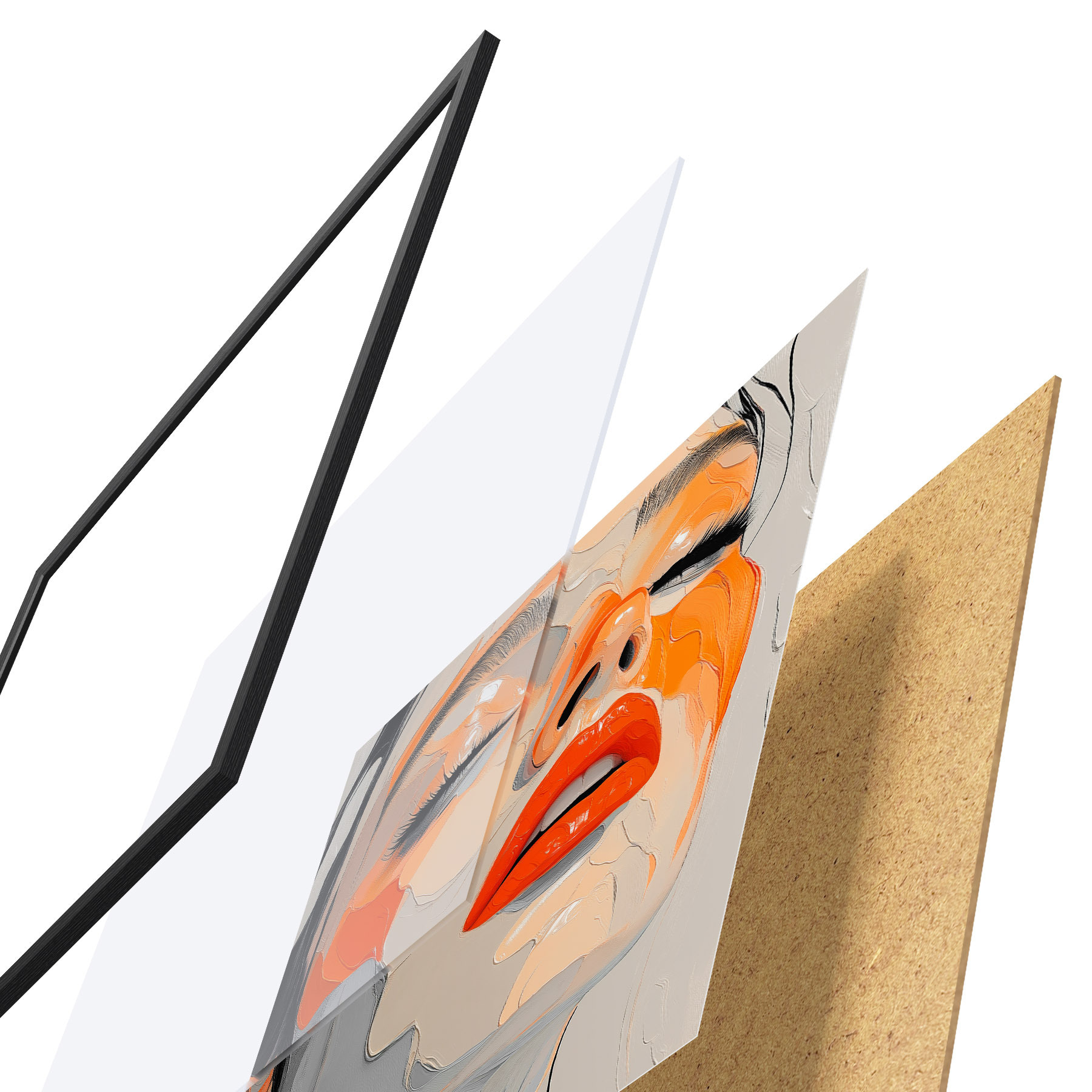 Das Poster besteht aus einem Rahmen, Plexiglas, einem gedruckten Bild und einer Rückwand aus Spanplatten. Dank der Halterungen auf der Rückseite kann das Poster sofort an die Wand gehängt werden.