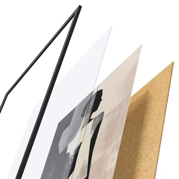 Das Poster besteht aus einem Rahmen, Plexiglas, einem gedruckten Bild und einer Rückwand aus Spanplatten. Dank der Halterungen auf der Rückseite kann das Poster sofort an die Wand gehängt werden.