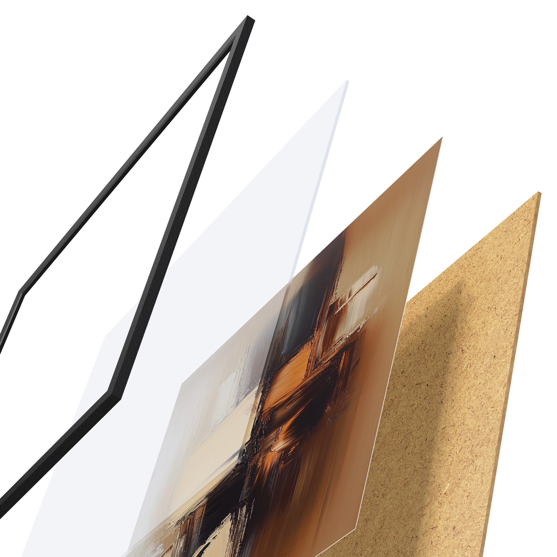 Das Poster besteht aus einem Rahmen, Plexiglas, einem gedruckten Bild und einer Rückwand aus Spanplatten. Dank der Halterungen auf der Rückseite kann das Poster sofort an die Wand gehängt werden.