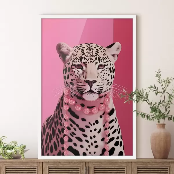 Poster Porträt eines Leoparden mit rosa Halskette f43976