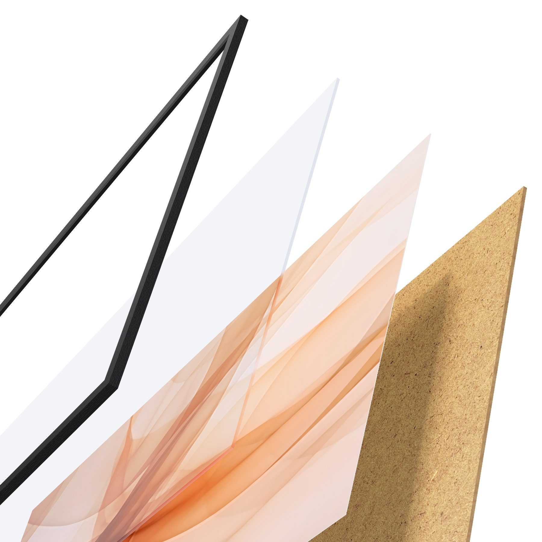 Das Poster besteht aus einem Rahmen, Plexiglas, einem gedruckten Bild und einer Rückwand aus Spanplatten. Dank der Halterungen auf der Rückseite kann das Poster sofort an die Wand gehängt werden.