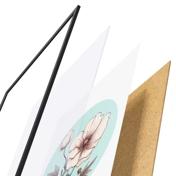 Das Poster besteht aus einem Rahmen, Plexiglas, einem gedruckten Bild und einer Rückwand aus Spanplatten. Dank der Halterungen auf der Rückseite kann das Poster sofort an die Wand gehängt werden.