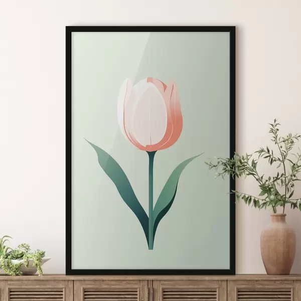 Poster Gemalte Tulpe auf hellgrünem Hintergrund Nr f44000