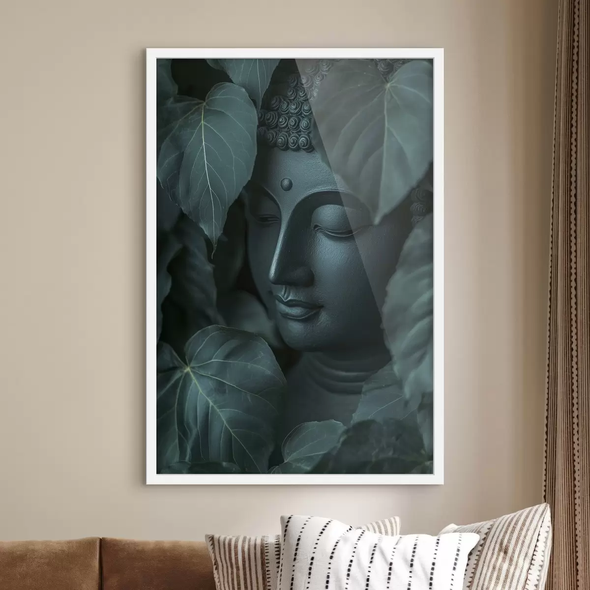Poster Buddha in den grünen Blättern, Buddhismus, tropisch, Realismus Nr f44004