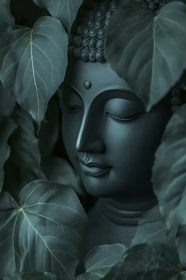 Poster Buddha in den grünen Blättern, Buddhismus, tropisch, Realismus Nr f44004