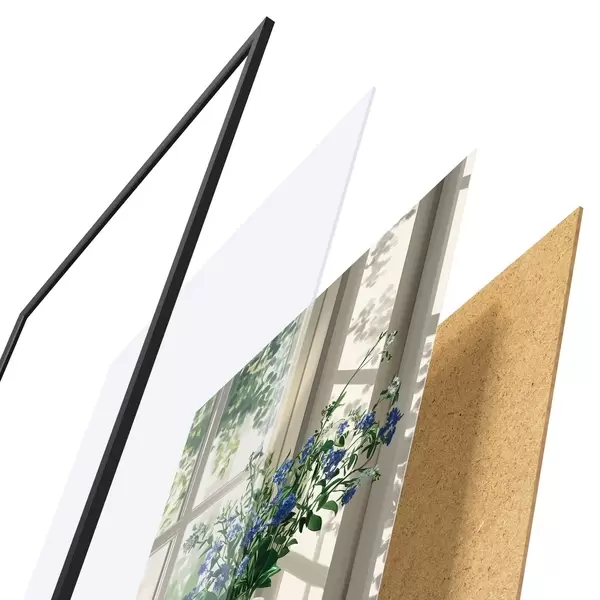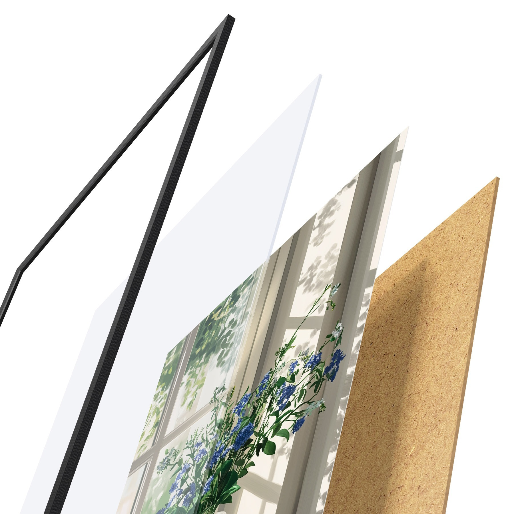 Das Poster besteht aus einem Rahmen, Plexiglas, einem gedruckten Bild und einer Rückwand aus Spanplatten. Dank der Halterungen auf der Rückseite kann das Poster sofort an die Wand gehängt werden.