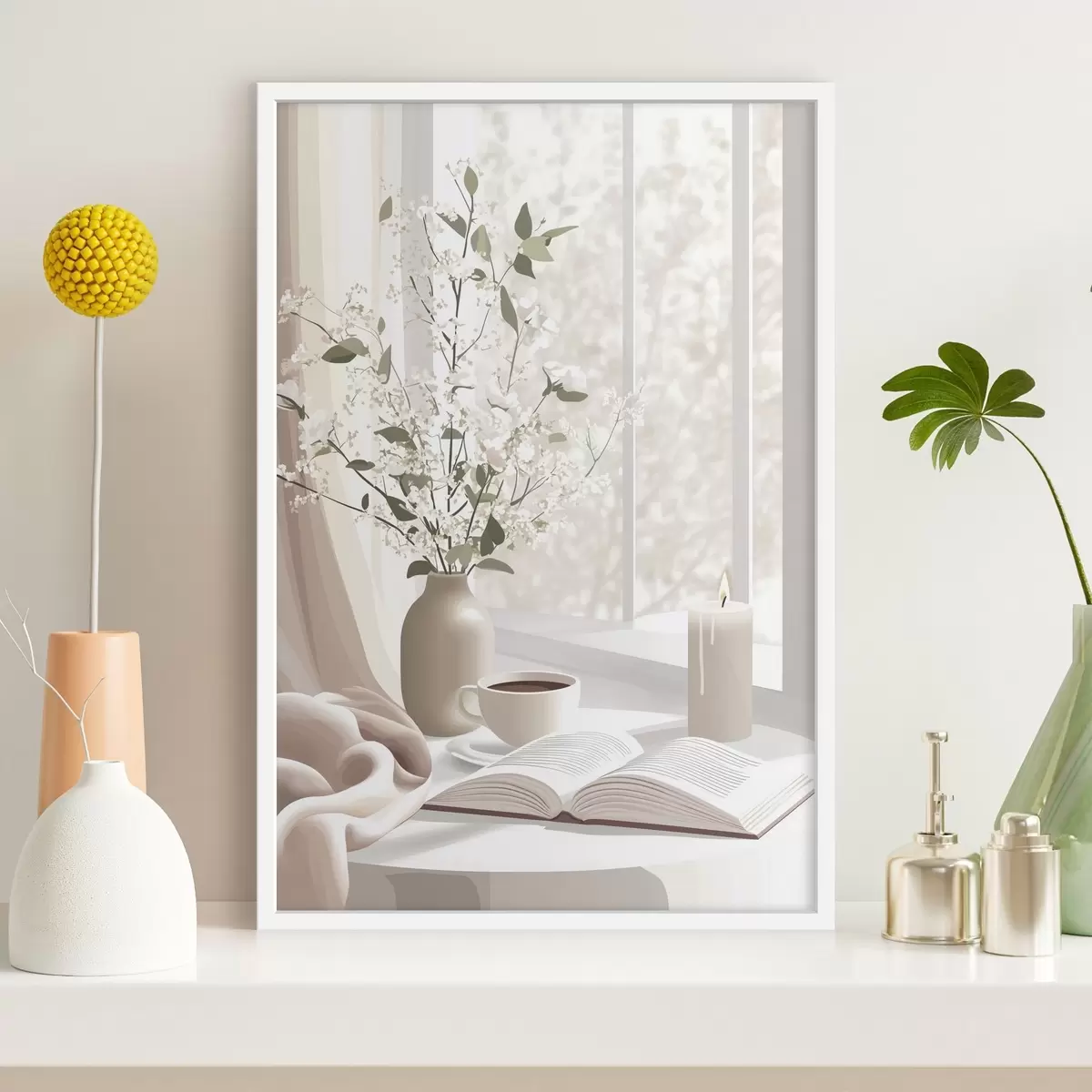 Poster Frühlingsmorgen mit Kaffee und Blumen, zarte Pastellfarben Nr f44015