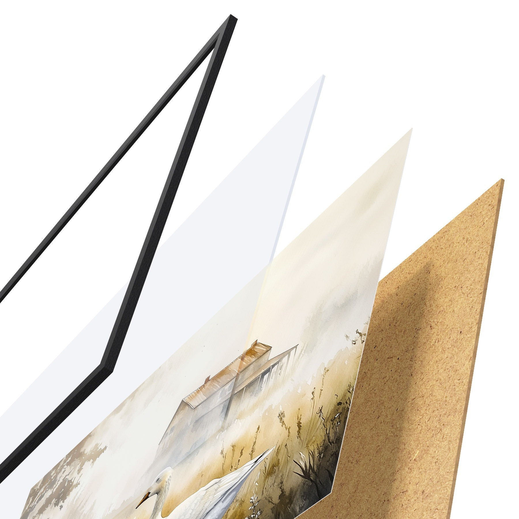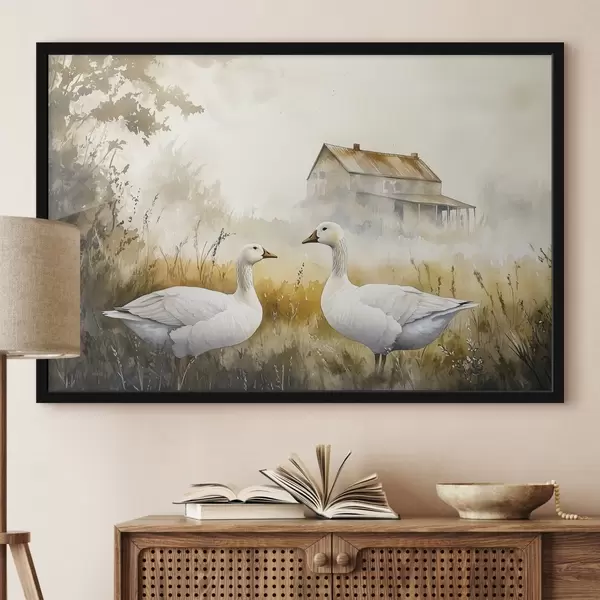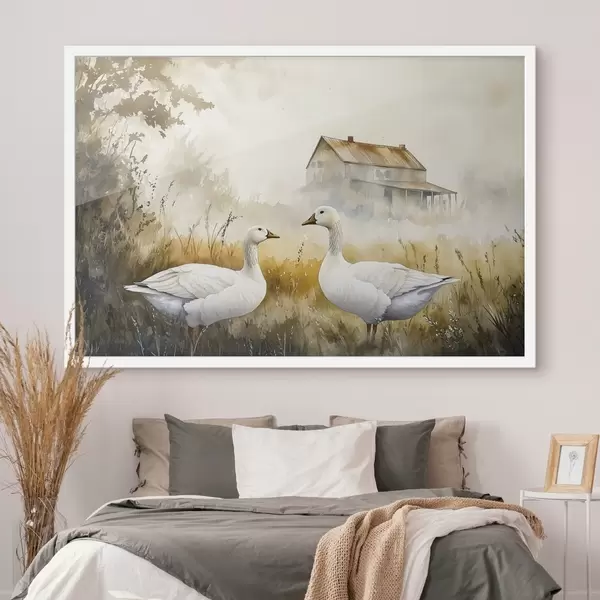 Poster Aquarell-Stil Gänse auf dem Feld, Dorf, rustikal Nr f44024