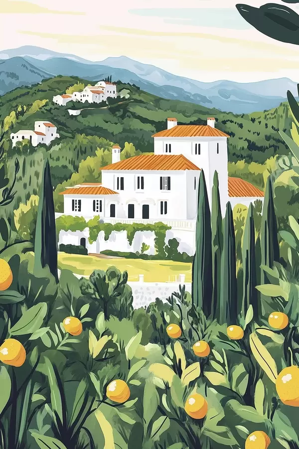 Poster Sommer, Natur, mediterran, Zitronenbäume, Architektur f44028