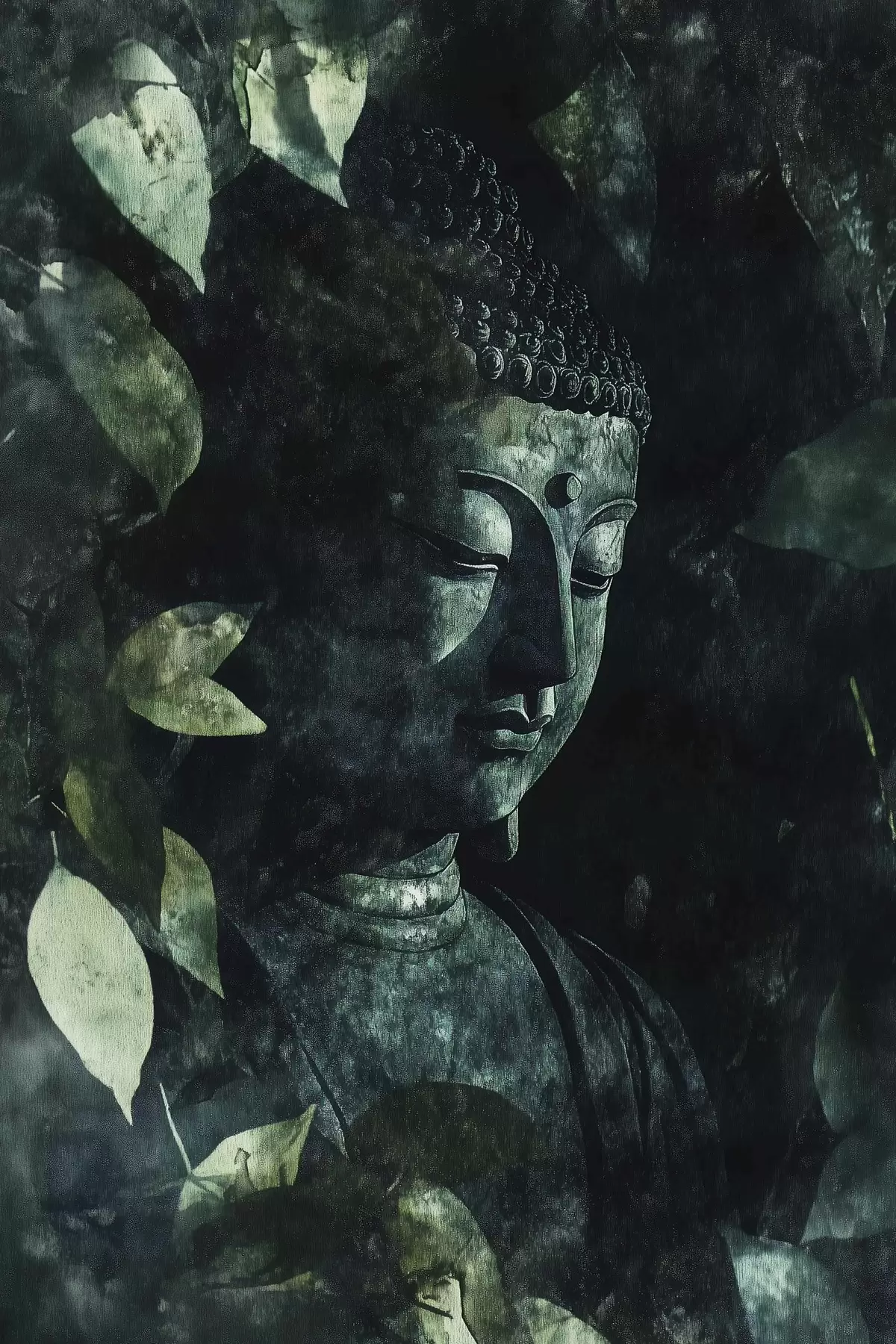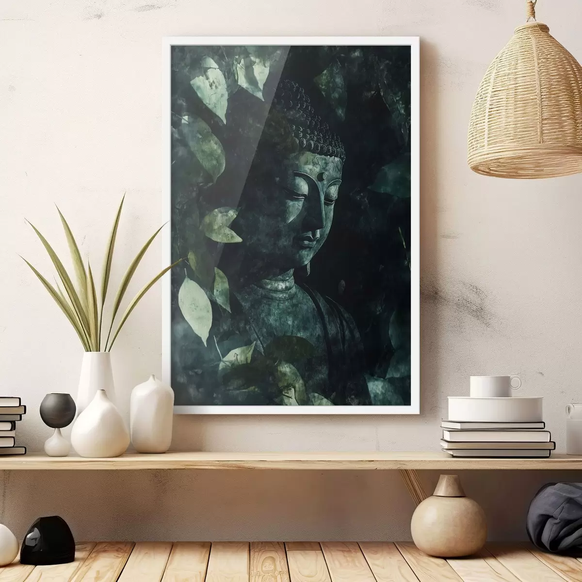 Poster Meditativer Buddha in den grünen Blättern, spirituell Nr f44029