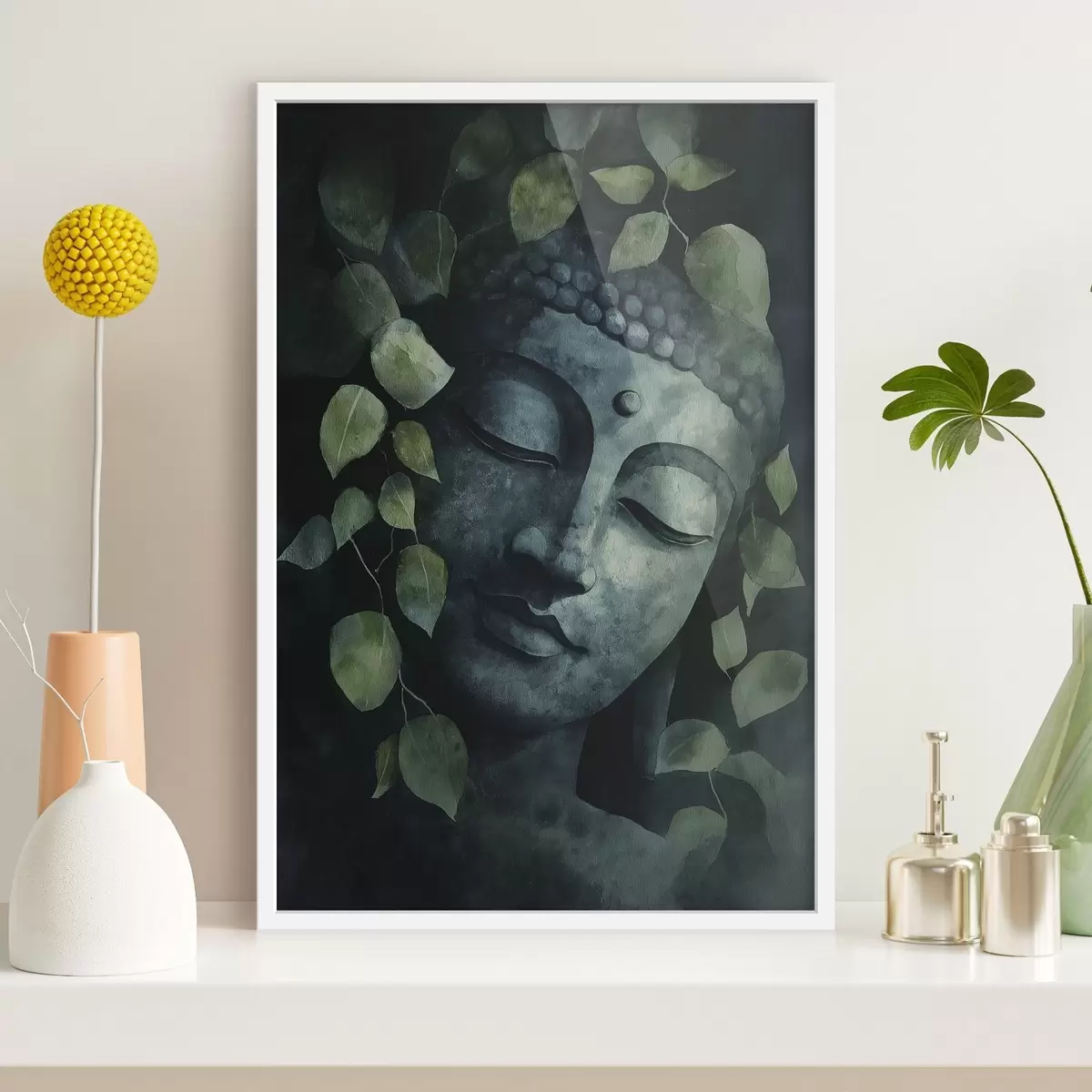 Poster Buddha mit geschlossenen Augen, Meditation, grüne Farben f44030