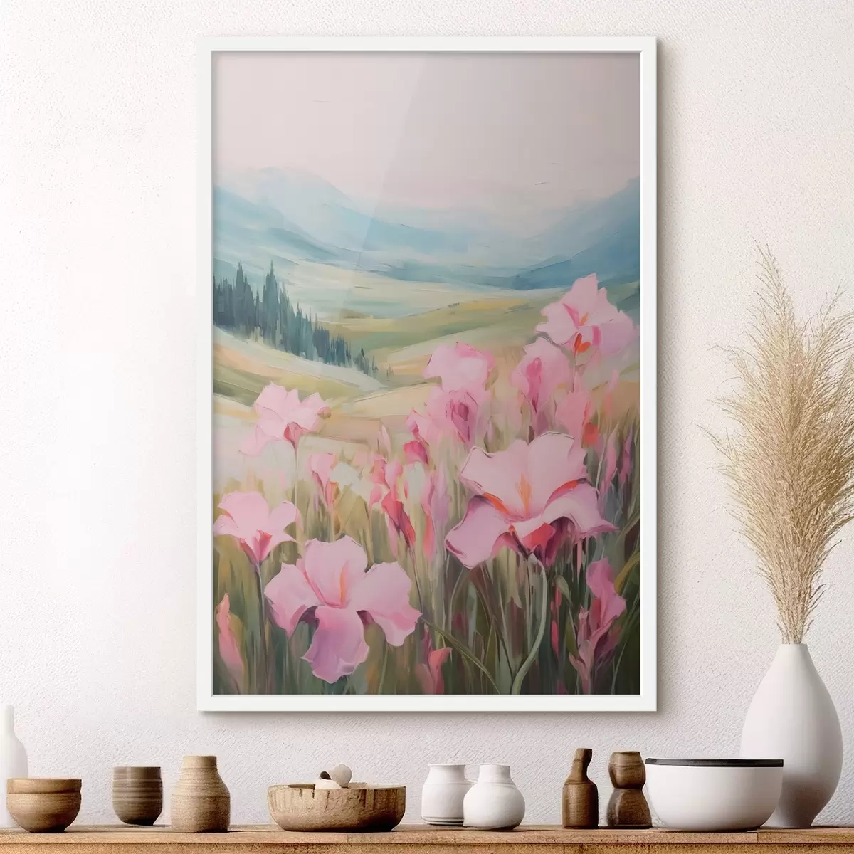Poster Schwertlilien vor der Kulisse der Berge Nr f44039