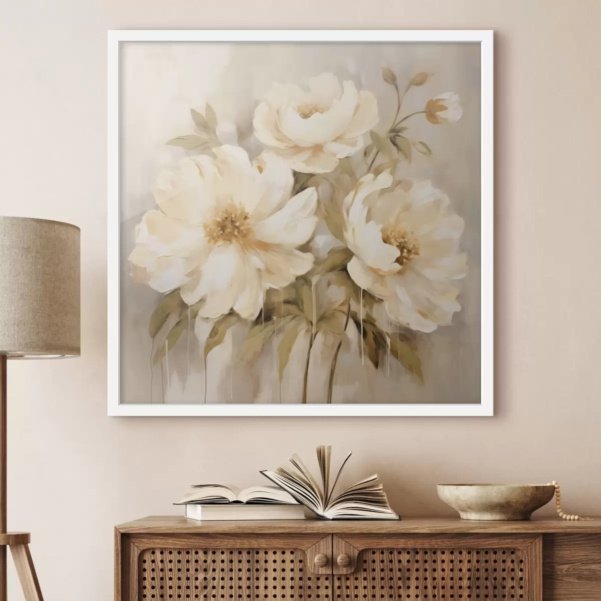 Poster Florale сomposition mit weißen Blütenblättern Nr f44043