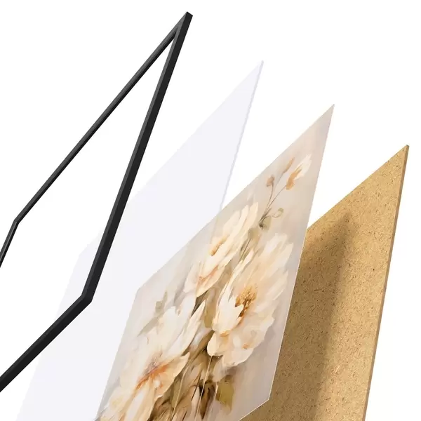 Das Poster besteht aus einem Rahmen, Plexiglas, einem gedruckten Bild und einer Rückwand aus Spanplatten. Dank der Halterungen auf der Rückseite kann das Poster sofort an die Wand gehängt werden.