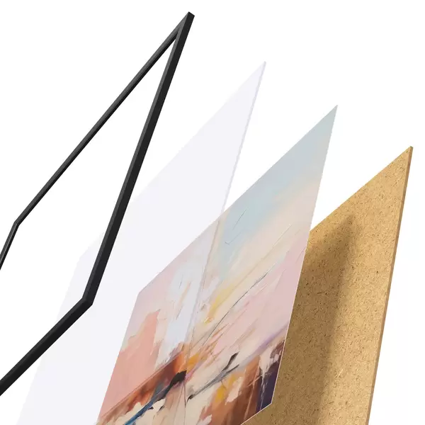 Das Poster besteht aus einem Rahmen, Plexiglas, einem gedruckten Bild und einer Rückwand aus Spanplatten. Dank der Halterungen auf der Rückseite kann das Poster sofort an die Wand gehängt werden.
