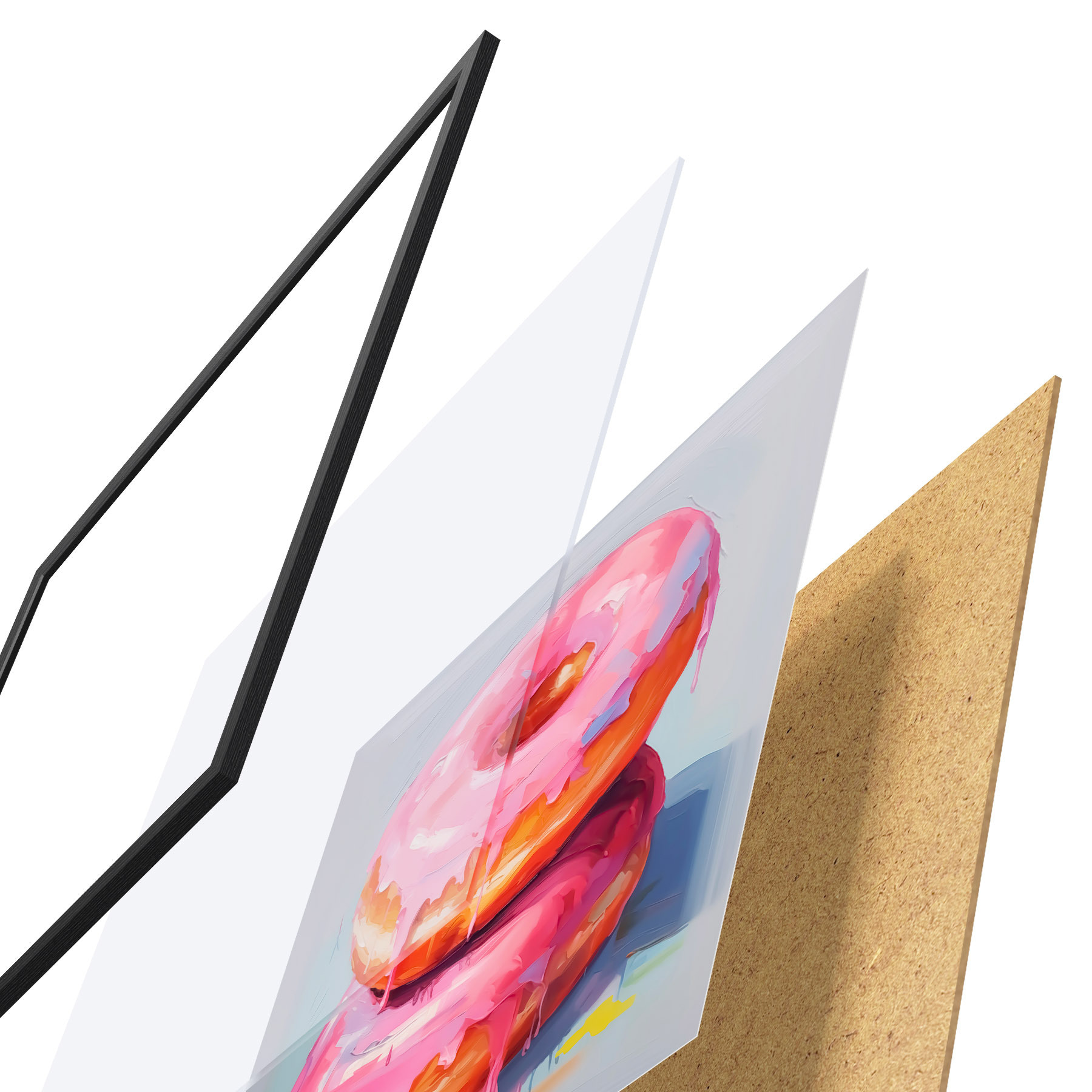 Das Poster besteht aus einem Rahmen, Plexiglas, einem gedruckten Bild und einer Rückwand aus Spanplatten. Dank der Halterungen auf der Rückseite kann das Poster sofort an die Wand gehängt werden.