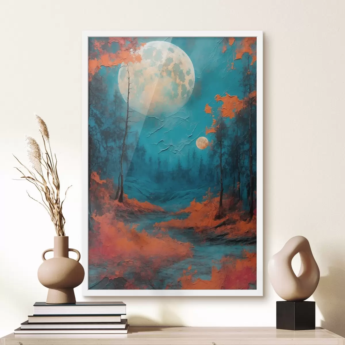 Poster Schwarzer Wald in schwarzem Mond in Ölgemälde Stil Nr f44063