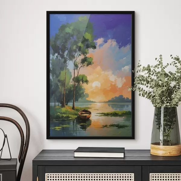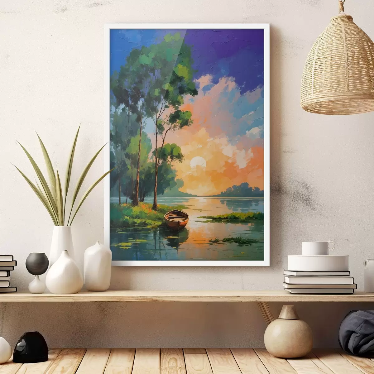 Poster Boot in der Nähe einer Insel in Acrylmalerei Stil f44065