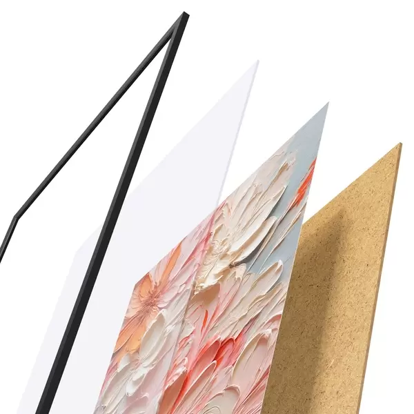 Das Poster besteht aus einem Rahmen, Plexiglas, einem gedruckten Bild und einer Rückwand aus Spanplatten. Dank der Halterungen auf der Rückseite kann das Poster sofort an die Wand gehängt werden.