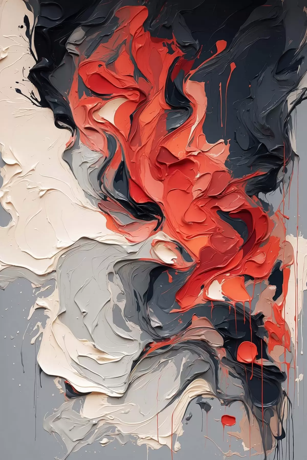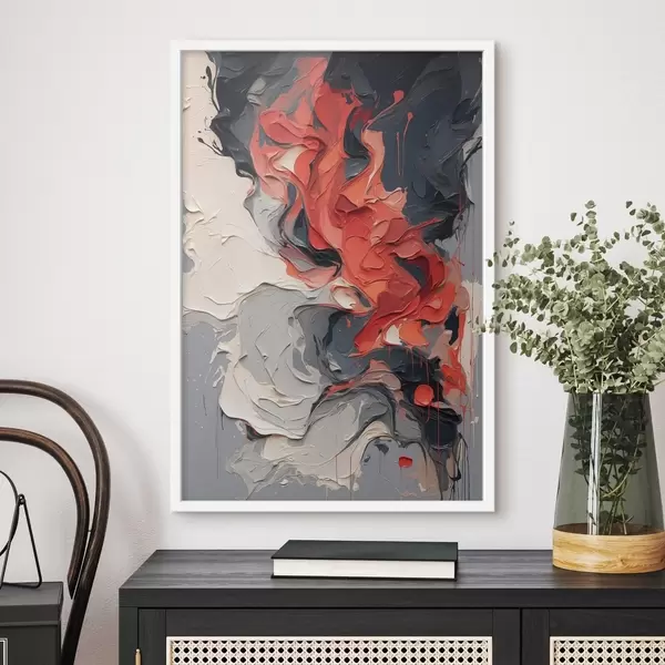 Poster Abstraktes Ölgemälde in roten, schwarzen und grauen Farben Nr f44079