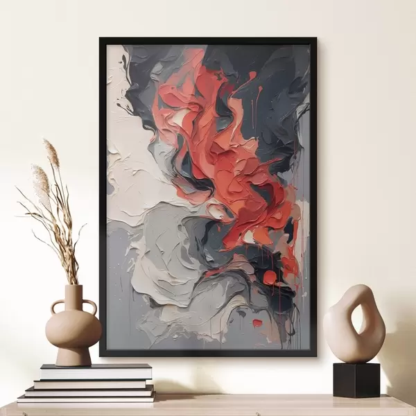 Poster Abstraktes Ölgemälde in roten, schwarzen und grauen Farben f44079