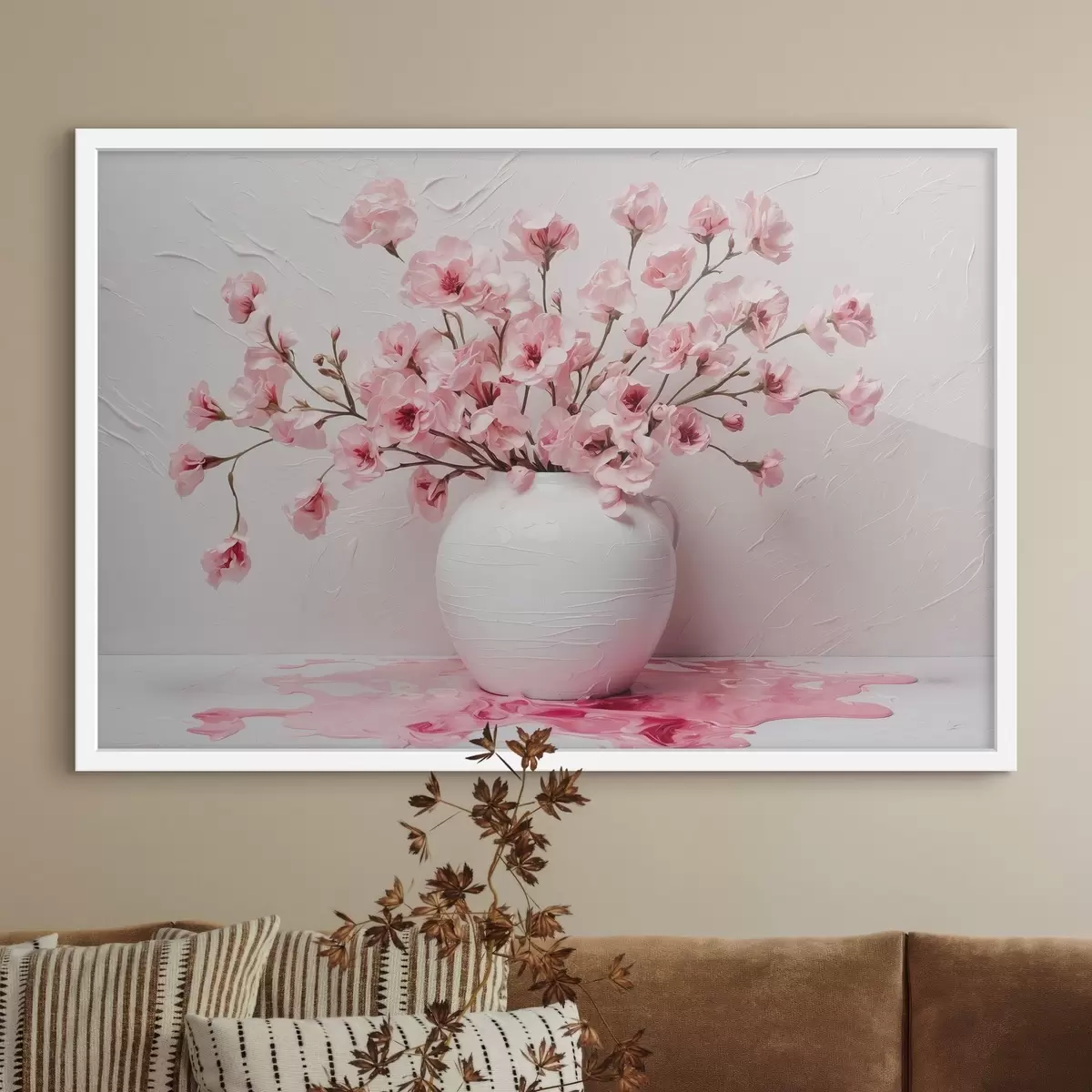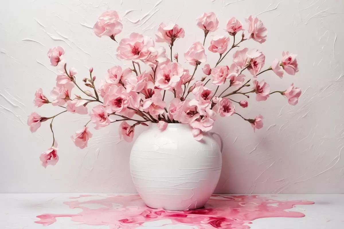Poster Rosa Blumen in großer weißer Vase Nr f44081