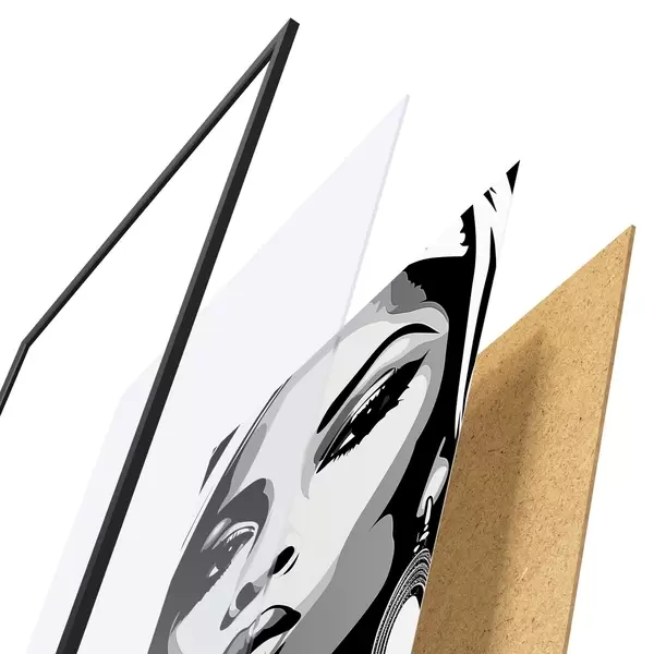 Das Poster besteht aus einem Rahmen, Plexiglas, einem gedruckten Bild und einer Rückwand aus Spanplatten. Dank der Halterungen auf der Rückseite kann das Poster sofort an die Wand gehängt werden.
