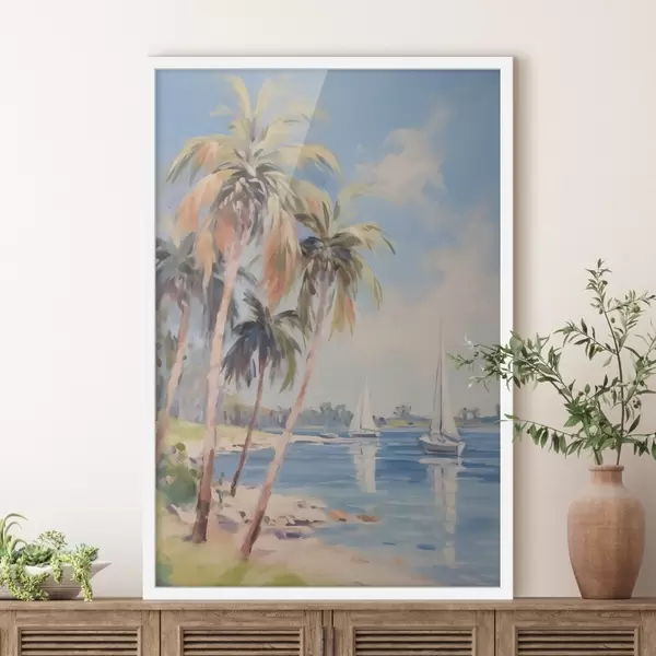Poster Palmen an der Bucht Nachahmung der Malerei Nr f44122