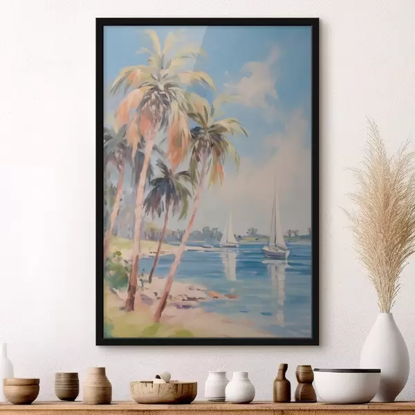 Poster Palmen an der Bucht Nachahmung der Malerei f44122