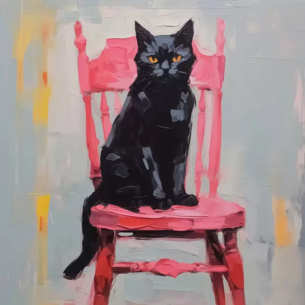 Poster Schwarze Katze auf einem Stuhl Nr f44130