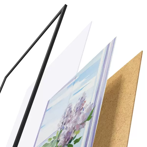 Das Poster besteht aus einem Rahmen, Plexiglas, einem gedruckten Bild und einer Rückwand aus Spanplatten. Dank der Halterungen auf der Rückseite kann das Poster sofort an die Wand gehängt werden.