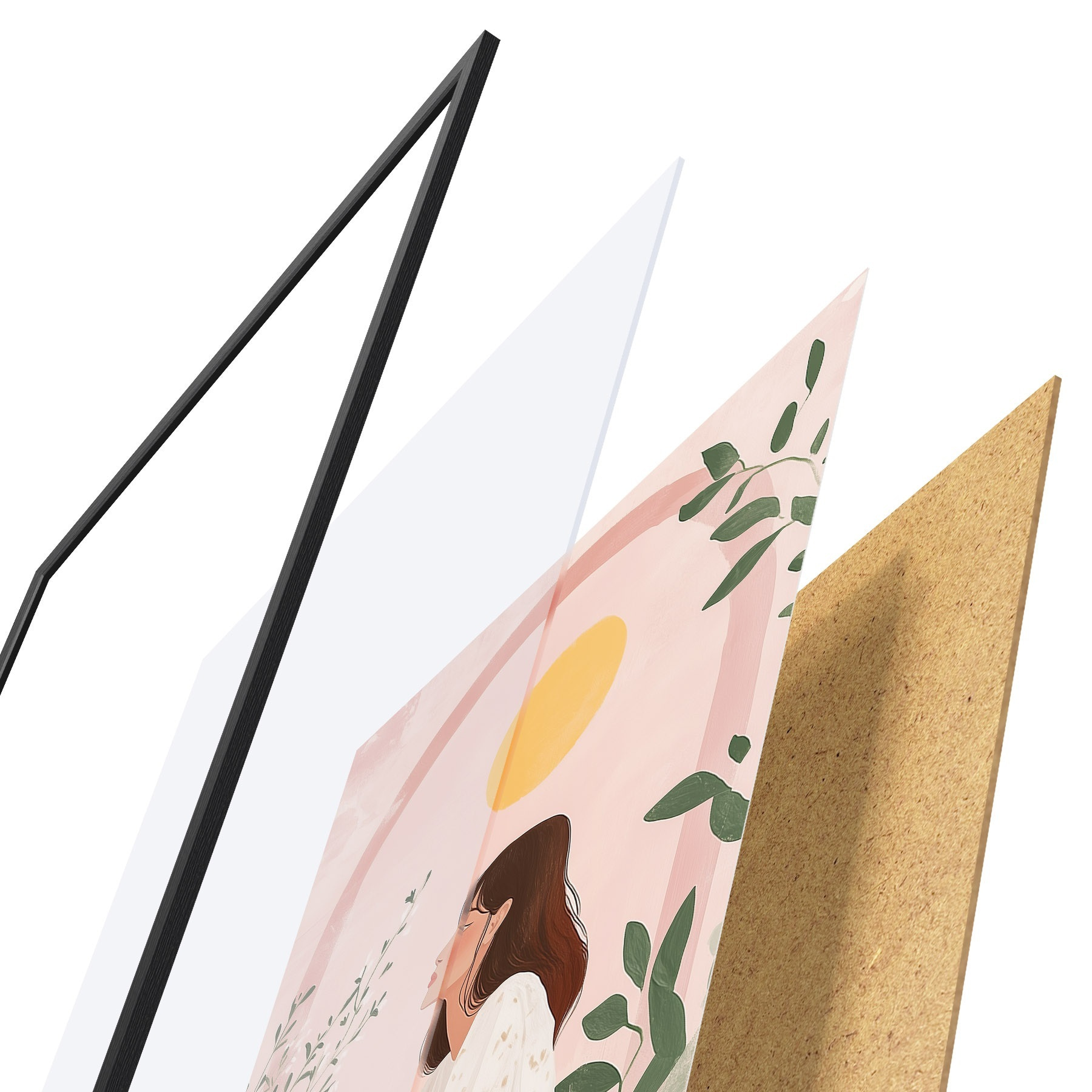 Das Poster besteht aus einem Rahmen, Plexiglas, einem gedruckten Bild und einer Rückwand aus Spanplatten. Dank der Halterungen auf der Rückseite kann das Poster sofort an die Wand gehängt werden.