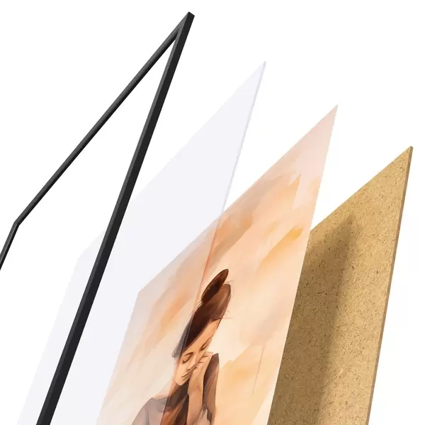 Das Poster besteht aus einem Rahmen, Plexiglas, einem gedruckten Bild und einer Rückwand aus Spanplatten. Dank der Halterungen auf der Rückseite kann das Poster sofort an die Wand gehängt werden.
