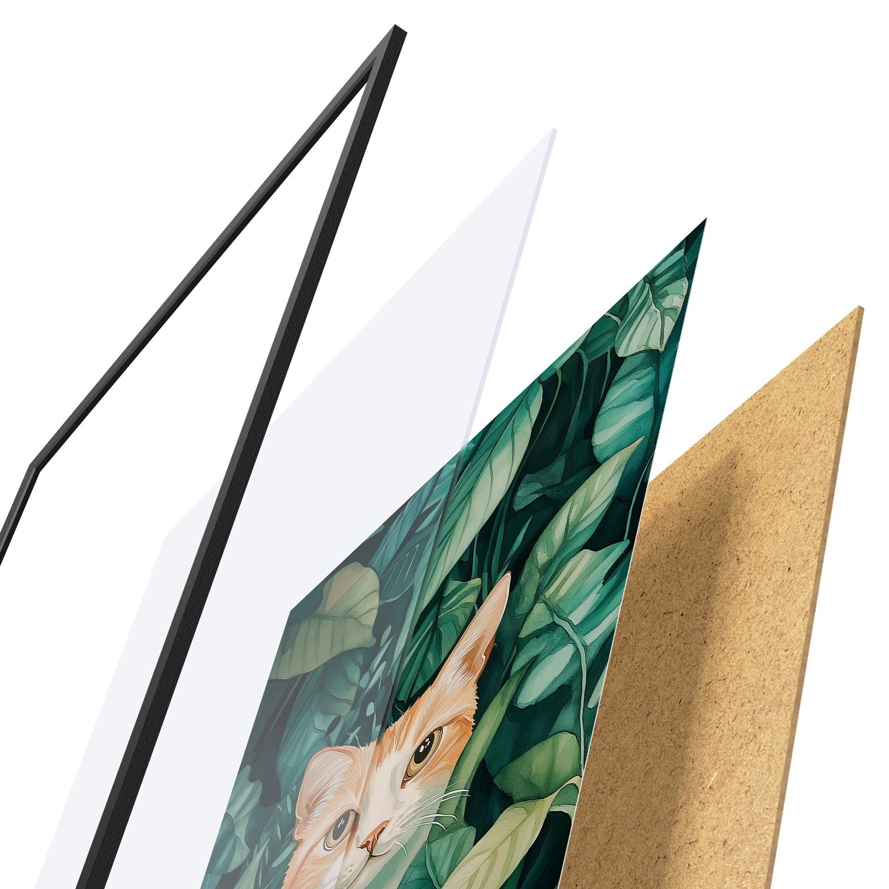 Das Poster besteht aus einem Rahmen, Plexiglas, einem gedruckten Bild und einer Rückwand aus Spanplatten. Dank der Halterungen auf der Rückseite kann das Poster sofort an die Wand gehängt werden.
