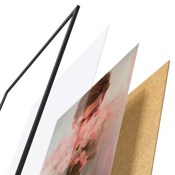 Das Poster besteht aus einem Rahmen, Plexiglas, einem gedruckten Bild und einer Rückwand aus Spanplatten. Dank der Halterungen auf der Rückseite kann das Poster sofort an die Wand gehängt werden.