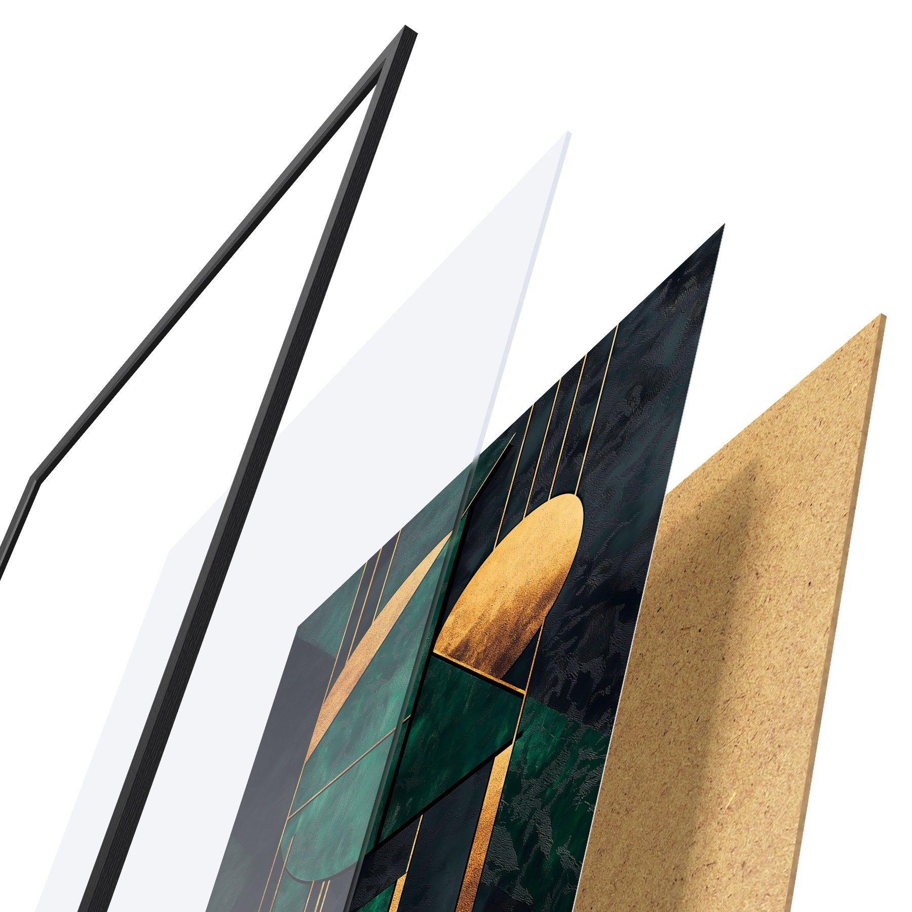Das Poster besteht aus einem Rahmen, Plexiglas, einem gedruckten Bild und einer Rückwand aus Spanplatten. Dank der Halterungen auf der Rückseite kann das Poster sofort an die Wand gehängt werden.