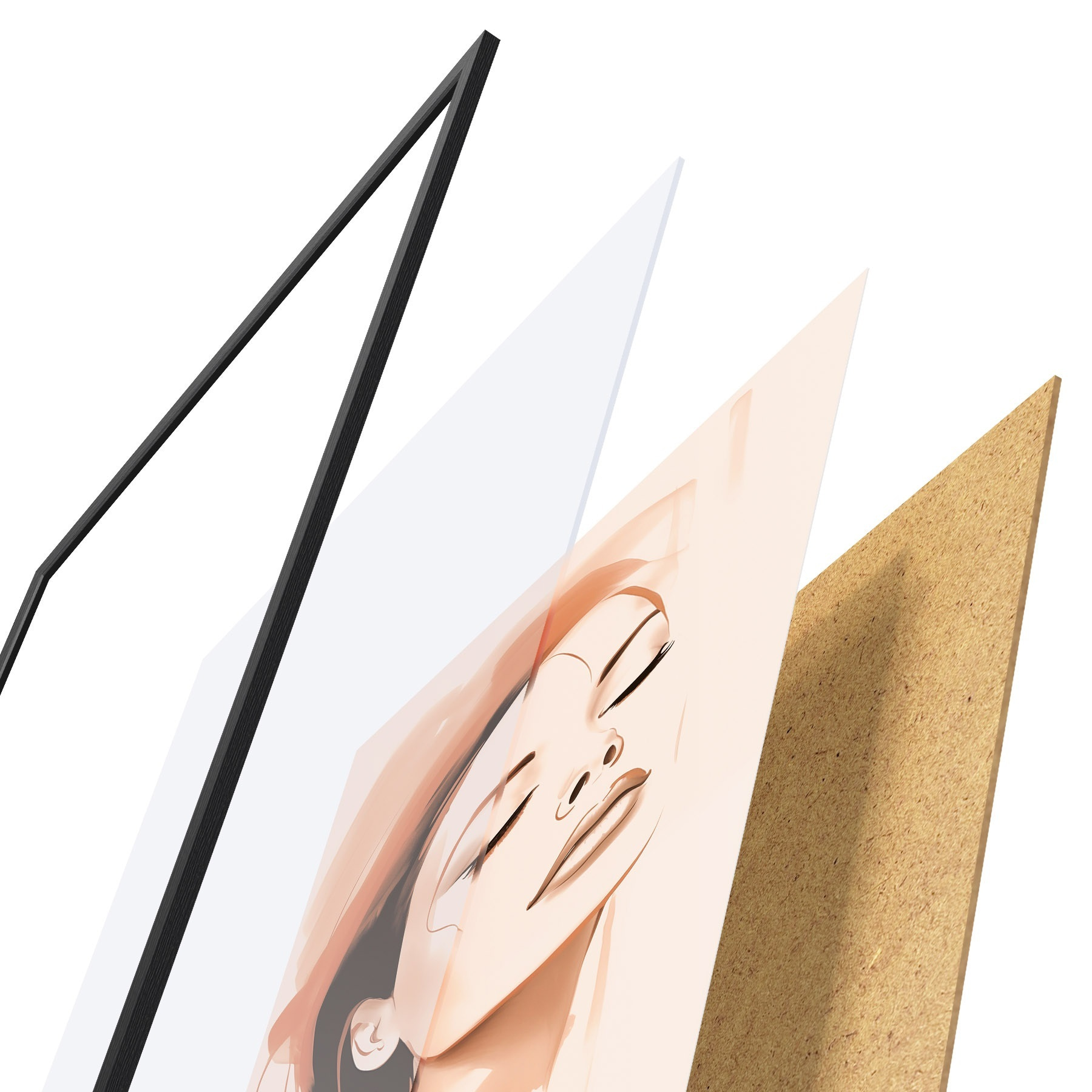 Das Poster besteht aus einem Rahmen, Plexiglas, einem gedruckten Bild und einer Rückwand aus Spanplatten. Dank der Halterungen auf der Rückseite kann das Poster sofort an die Wand gehängt werden.
