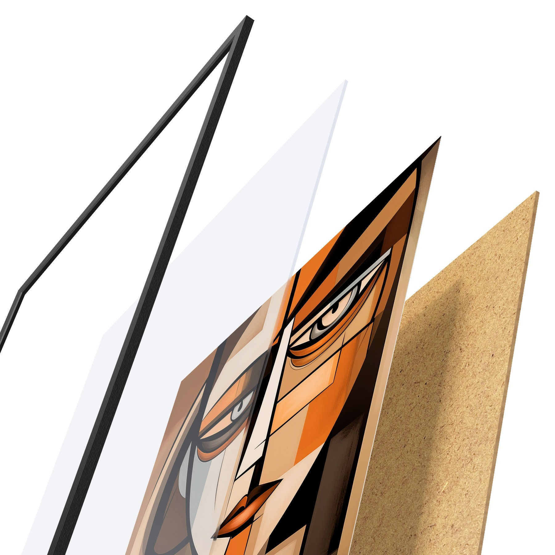 Das Poster besteht aus einem Rahmen, Plexiglas, einem gedruckten Bild und einer Rückwand aus Spanplatten. Dank der Halterungen auf der Rückseite kann das Poster sofort an die Wand gehängt werden.