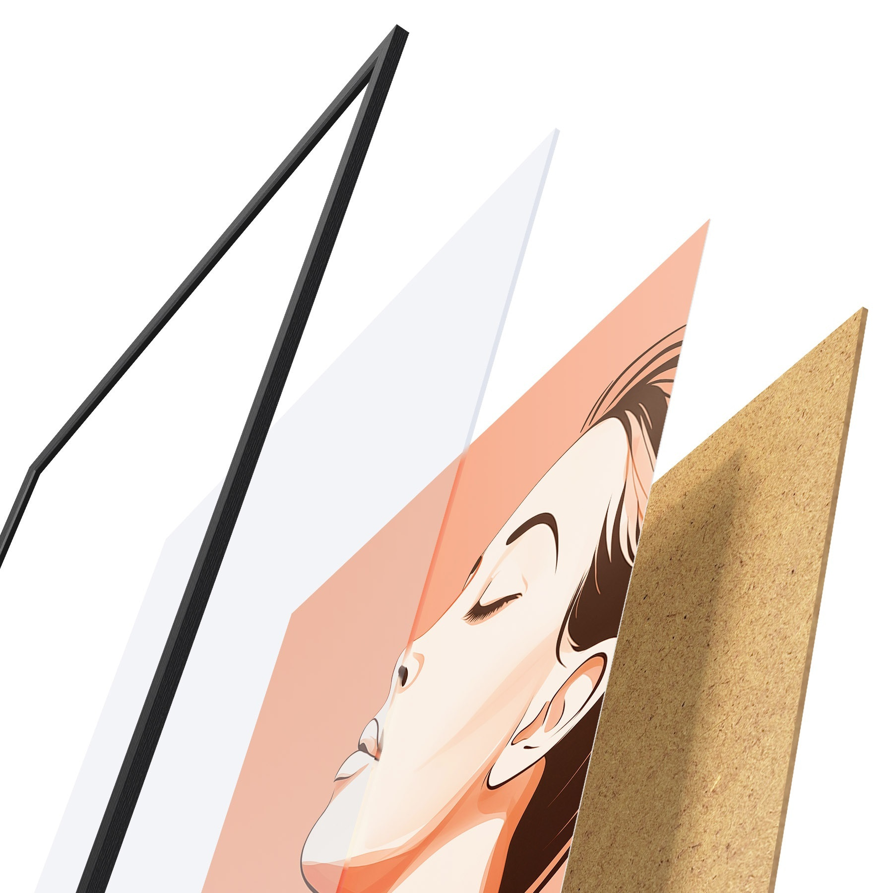 Das Poster besteht aus einem Rahmen, Plexiglas, einem gedruckten Bild und einer Rückwand aus Spanplatten. Dank der Halterungen auf der Rückseite kann das Poster sofort an die Wand gehängt werden.