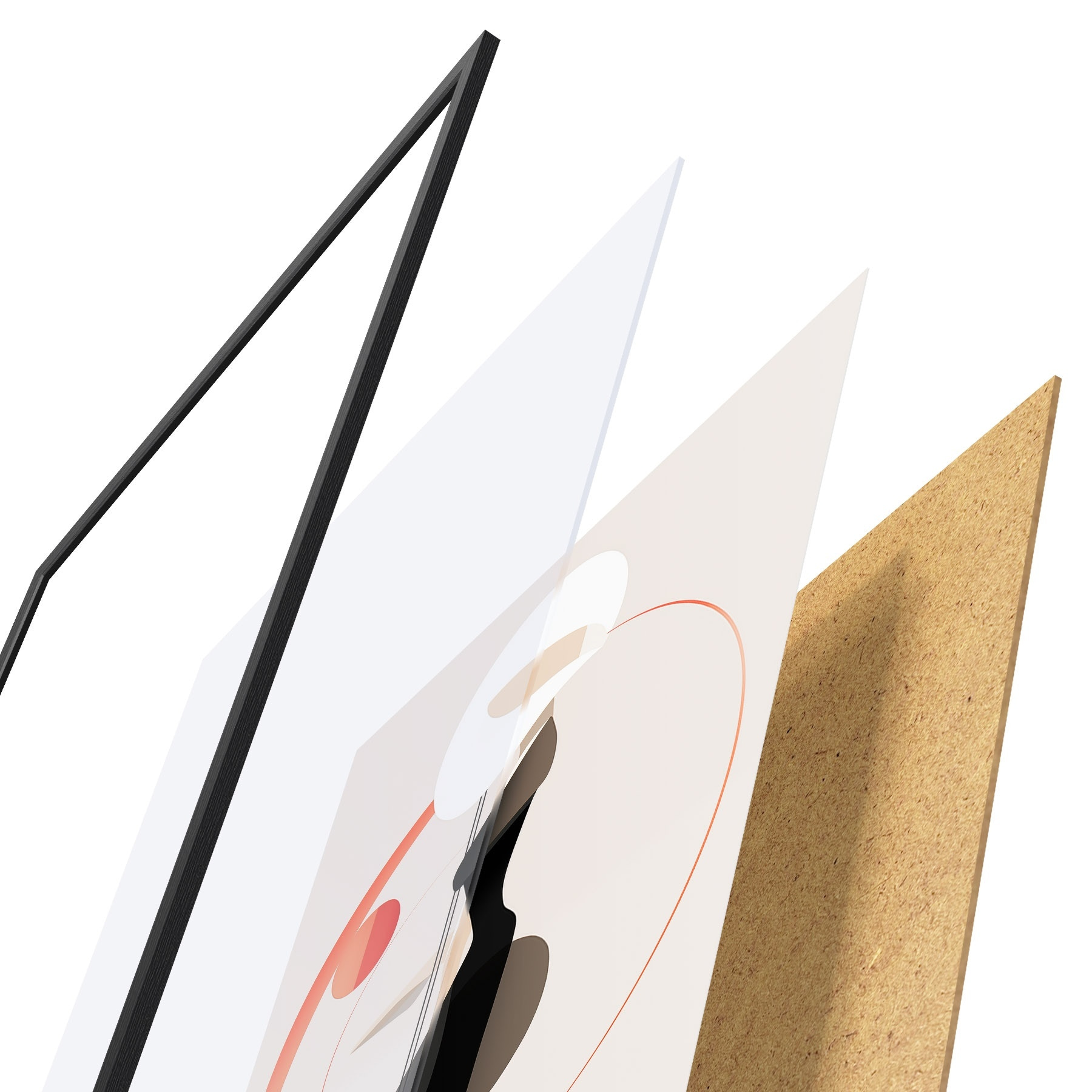 Das Poster besteht aus einem Rahmen, Plexiglas, einem gedruckten Bild und einer Rückwand aus Spanplatten. Dank der Halterungen auf der Rückseite kann das Poster sofort an die Wand gehängt werden.