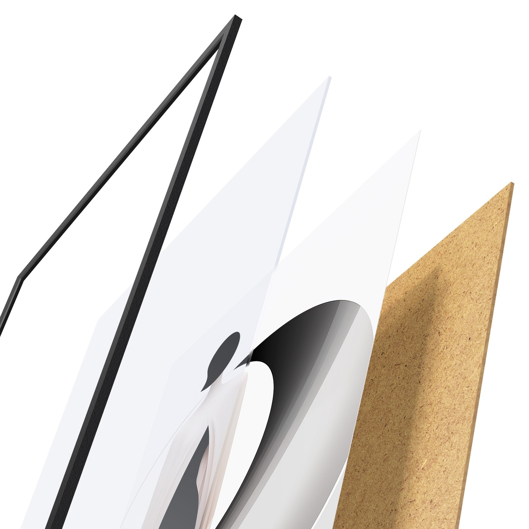 Das Poster besteht aus einem Rahmen, Plexiglas, einem gedruckten Bild und einer Rückwand aus Spanplatten. Dank der Halterungen auf der Rückseite kann das Poster sofort an die Wand gehängt werden.