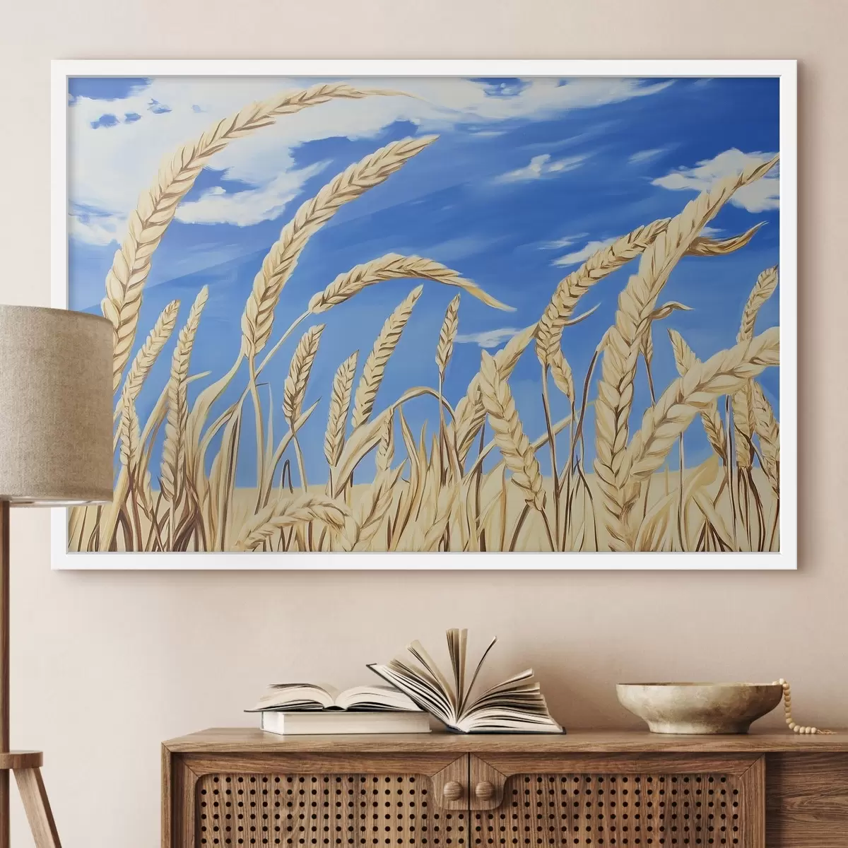Poster Weizenähren unter dem blauen Himmel Nr f44212