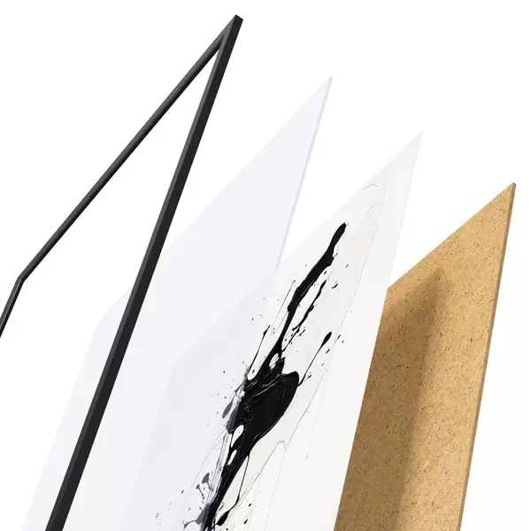 Das Poster besteht aus einem Rahmen, Plexiglas, einem gedruckten Bild und einer Rückwand aus Spanplatten. Dank der Halterungen auf der Rückseite kann das Poster sofort an die Wand gehängt werden.